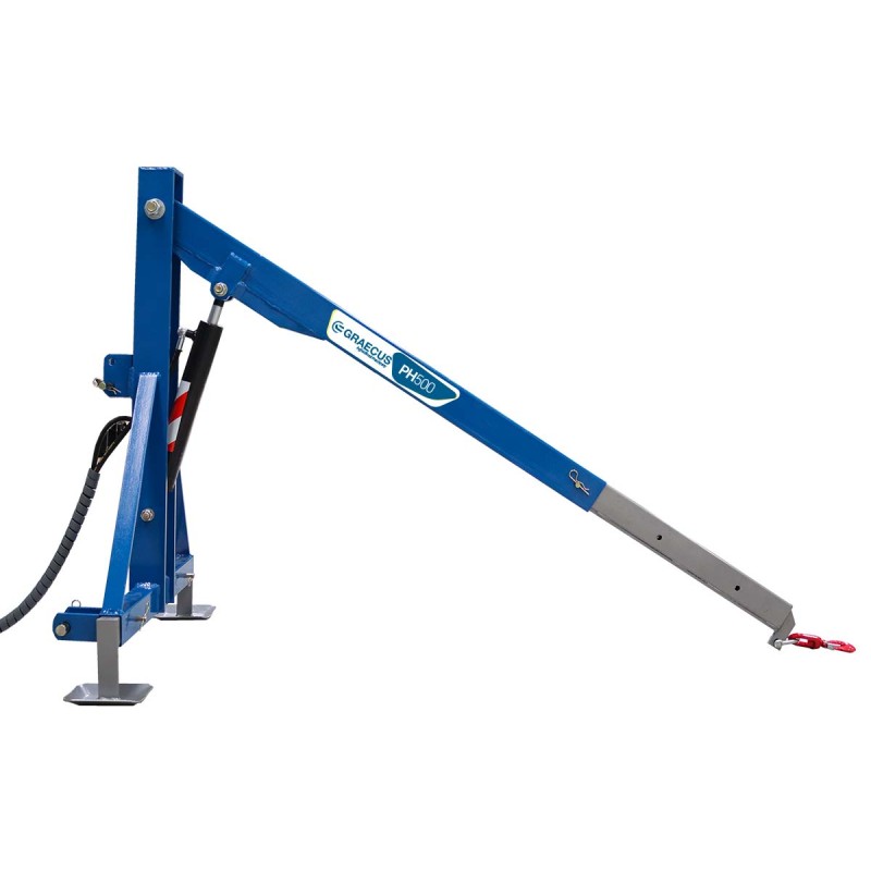 Το PH500 είναι ανυψωτικό μηχάνημα που τοποθετείτε στα μπράτσα του τρακτέρ. Ο γερανός ( γερανάκι) για τρακτέρ, τοποθετείται έυκολα στο υδραυλικό σύστημα κάθε είδους τρακτέρ και έχει κατασκευαστεί για να διευκολύνει όλες τις ανυψωτικές εργασίες, αγροτικού περιεχομένου και μη. Η κίνηση γίνεται υδραυλικά, με μπουκάλα διπλής ενεργείας, χρειάζονται 2 αναμονές για την σύνδεση του μηχανήματος. Το παπαγαλάκι έχει 3 σκάλες επέκτασης για την ρύθμιση του ύψους, 1η-500kg, 2η-350kg, 3η-200kg. Το μέγιστο κατακόρυφο ύψος στο γάντζο είναι 2,67m συν το ύψος των υδραυλικών. Το υδραυλικό παλάγκο είναι κατασκευασμένο ώστε να ταιριάζει στα περισσότερα μοντέλα τρακτέρ όπως : LS, LG, Kubota, New holland, Landini, McCormick, Mitsubishi, Yanmar, John Deere, Same Solaris, CASE, Deutz-Fahr, Lamborghini, Carraro, BCS, Fendt, Ferrari, Goldoni, Arbos, Hurliman, Massey Ferguson, Pasquali, Valpadana, Zetor, Ursus, Kioti,Iseki, Solis, Branson και άλλα.    Πλεονεκτήματα και χαρακτηριστικά