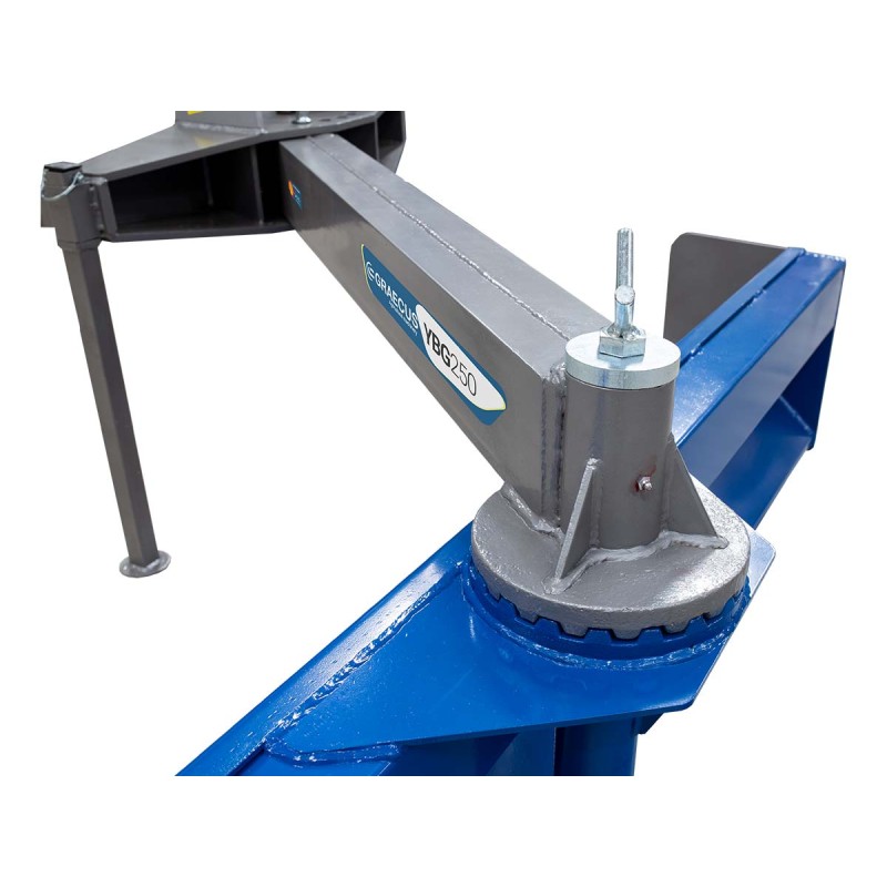 - Ο βραχίονας μπορεί να μετατοπιστεί έξω από το τρακτερ( αριστερά ή δεξιά), εύκολα και γρήγορα με χρήση πείρου σε πλάκες.