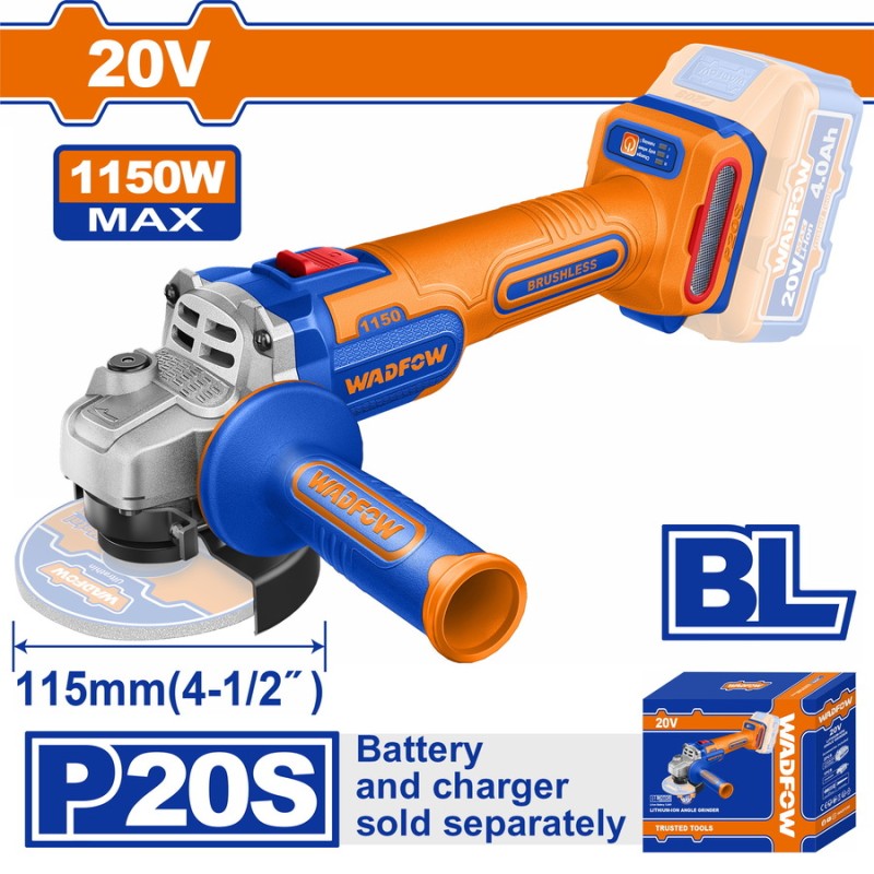 WADFOW ΓΩΝΙΑΚΟΣ ΤΡΟΧΟΣ 115mm ΜΠΑΤ. Li-ion 20V ΧΩΡΙΣ ΜΠΑΤΑΡΙΑ & ΦΟΡΤΙΣΤΗ (WLAPB520)