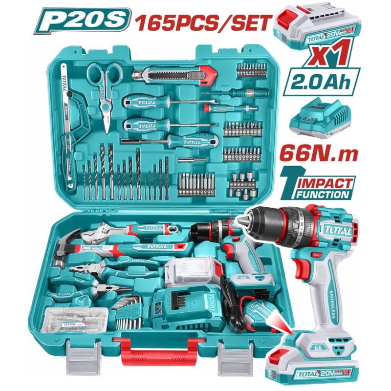 TOTAL ΕΠΑΓΓ. ΣΕΤ ΔΡΑΠ/ΒΙΔΟ ΚΡΟΥΣΤΙΚΟ ΜΠΑΤ. Li-ion 20V/2Ah/66Nm/1 ΜΠΑΤ BL Motor 165ΤΕΜ (THKTHP11652E)