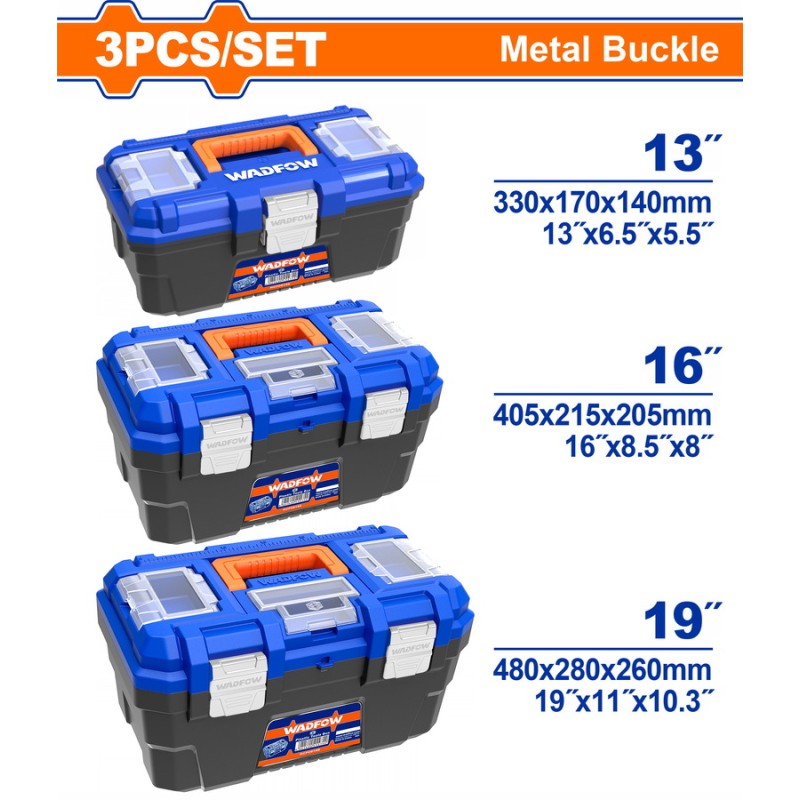 WADFOW ΣΕΤ 3ΤΕΜ ΕΡΓΑΛΕΙΟΘΗΚΕΣ ΠΛΑΣΤΙΚΕΣ 13"-16"-19" ΜΕ ΜΕΤΑΛ. ΚΟΥΜΠΩΜΑΤΑ (WTB4103)