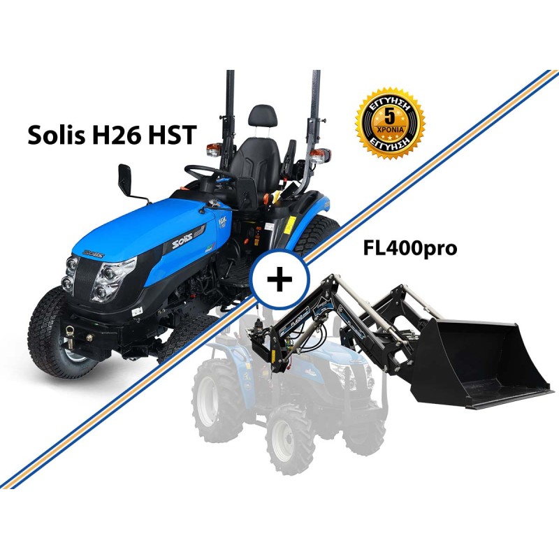 Τρακτέρ μικρό | Μίνι αμπελουργικό δενδροκομικό | Κινητήρας Mitsubishi | SOLIS - YANMAR H26HST συνδιασμός με μπροστινό κουβά FL40