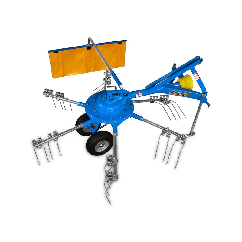 Χορτοσυλλέκτης τύπου ελικόπτερο, σχεδιασμένος για άνοιγμα, ανακάτεμα και συγκέντρωση χόρτου πριν την πρέσα.
