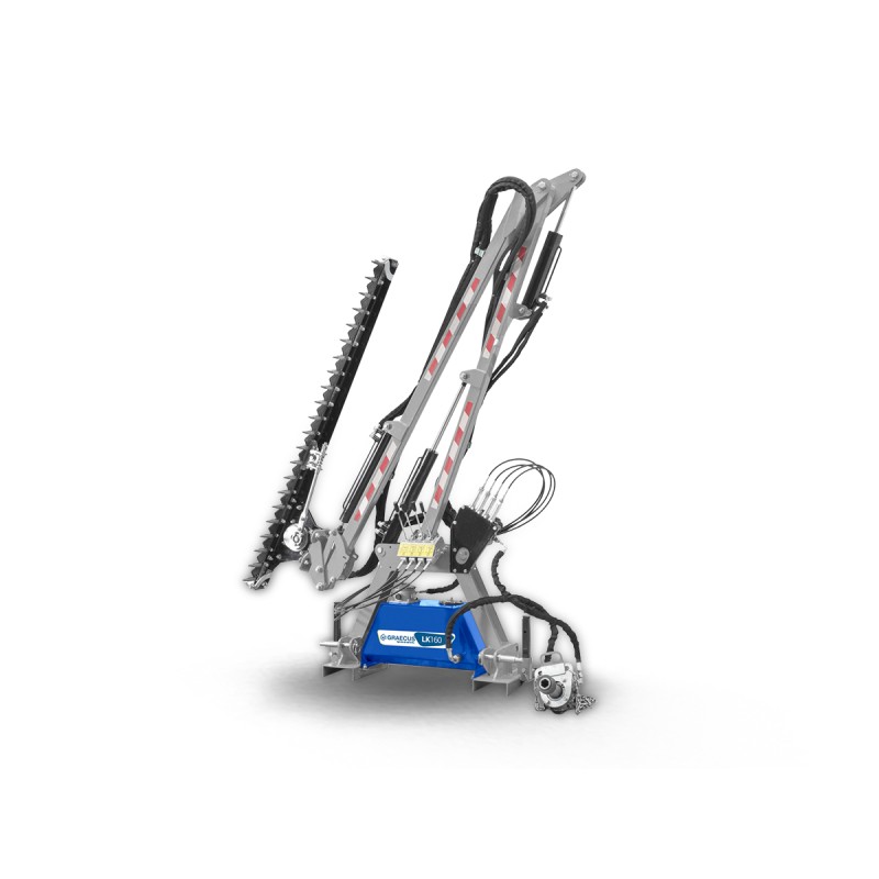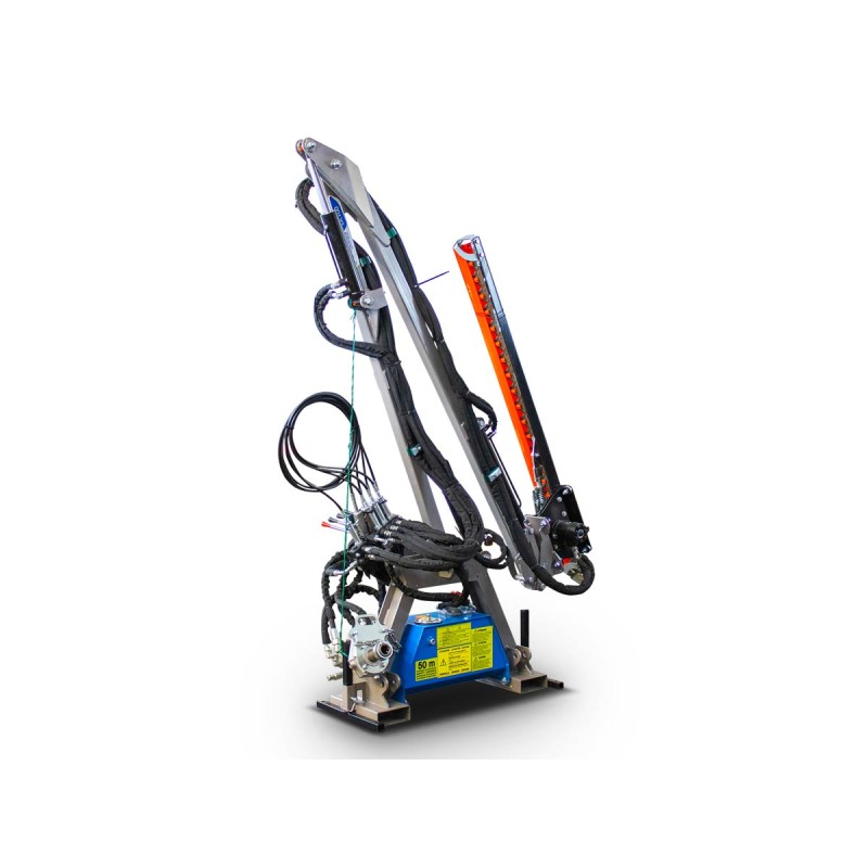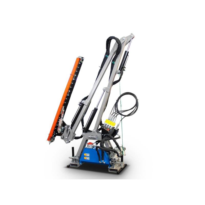 Βραχίονας κατασκευασμένος ώστε να λειτουργεί και στις δύο πλευρές (δεξιά - αριστερά) με δυνατότητα χρήσης και στο εμπρόσθιο τμήμα του τρακτέρ. Πολύ εύκολο στην χρήση υδραυλικά πτυσσόμενο μπράτσο 3,5 μέτρων ιδανικό για την διατήρηση μικρών θάμνων, δέντρων και άλλων ειδών βλάστησης με μέγιστη διάμετρο κοπής 2-3cm. Η διπλή υδραυλική αντλία επιτρέπει αποτελεσματικό κόψιμο με ταυτόχρονη κίνηση του βραχίονα. Αναστρέψιμος σκελετός 3 υδραυλικών κινήσεων. Απομακρυσμένος έλεγχος με χειριστήριο 4 μοχλών. Μπορεί να χρησιμοποιηθεί χωρίς καμπίνα με ασφάλεια ακόμα και στα πιο μικρά τρακτέρ, επειδή, σε αντίθεση με ένα καταστροφέα δεν εκτοξεύει υψηλής ταχύτητας υπολείμματα.