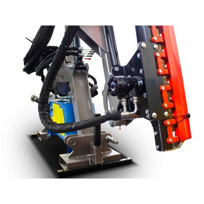 Υδραυλικό χορτοκοπτικό με μπάρα κοπής για τρακτέρ. Υδραυλικός αυτόνομος βραχίονας με λόγχη. Η κεφαλή κοπής μπορεί να κινηθεί και να προωθηθεί στην πλευρά του οδηγού.