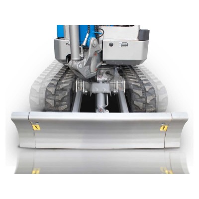 Το πλάτος της λεπίδας ισοπέδωσης μπορεί να προσαρμοστεί εύκολα και γρήγορα με έναν πείρο ώστε να ταιριάζει με το πλάτος των πτυσσόμενων ερπυστριών. |