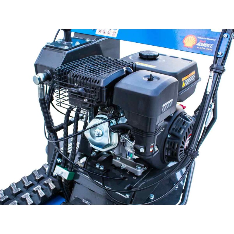 Ερπύστριες με αυτόματο τεντωτήρα κατασκευασμένες από ειδικό ενισχυμένο καουτσούκ που εγγυώνται τέλεια πρόσφυση και σταθερότητα σε όλους τους τύπους εδάφους χάρη στο πλάτος και το πέλμα τους.