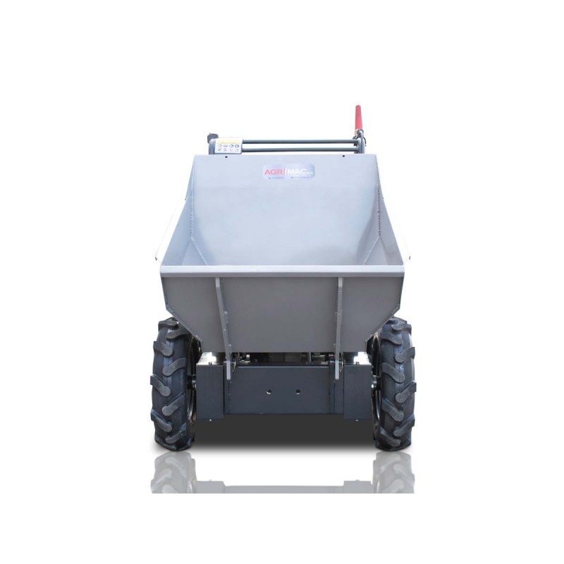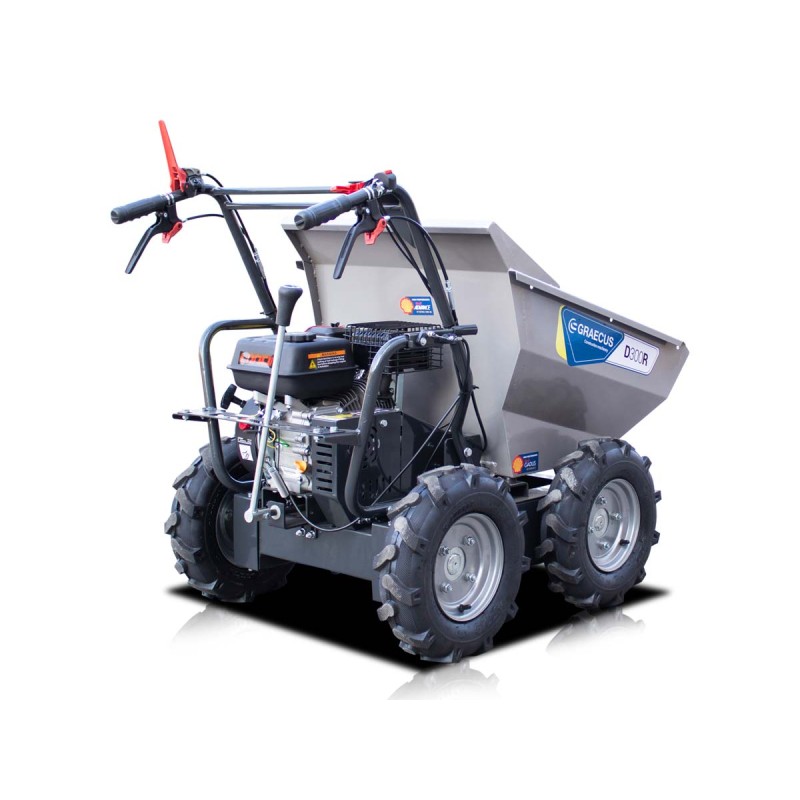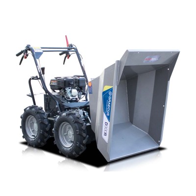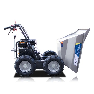 - Το σύστημα χειροκίνητης ανατροπής του δοχείου επιτρέπει την εκφόρτωση του υλικού με εξαιρετική ευκολία και χωρίς καμία προσπάθεια.