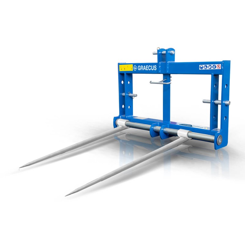 - Πιρούνια για μπάλες φορτίου 800kg με ρύθμιση θέσης, αναδυπλούμενα, μήκος λόγχης 1165mm για ζευξη στο υδραυλικό σύστημα 3ων σημείων του τρακτέρ
