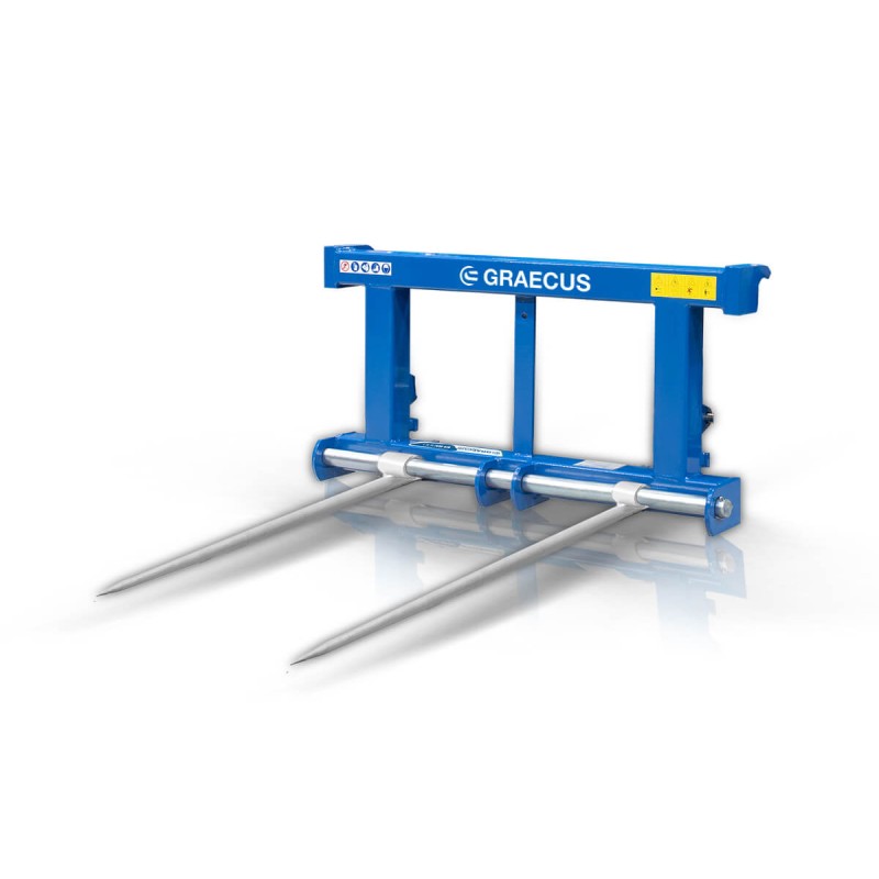 - Πιρούνια για μπάλες φορτίου 800kg με ρύθμιση θέσης, αναδυπλούμενα, μήκος λόγχης 1165mm για ζευξη στο υδραυλικό σύστημα 3ων σημείων του τρακτέρ