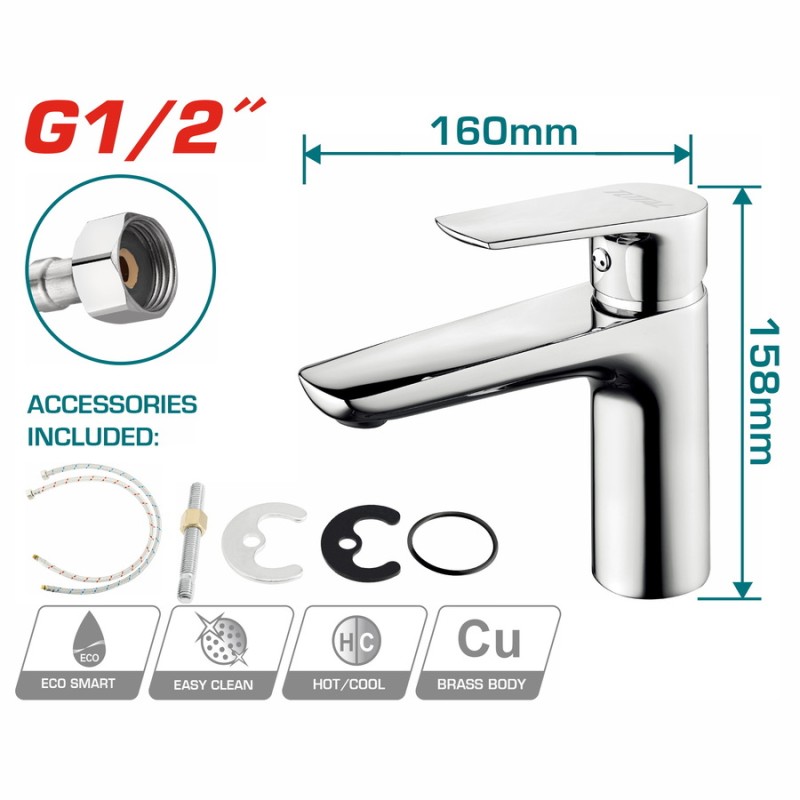 | Σώμα από ορείχαλκο + λαβή ψευδαργύρου Κεραμικό d=35mm Με 2 τεμ εύκαμπτους σωλήνες από ανοξείδωτο χάλυβα Βρύση ζεστού και κρύου νερού Συσκευασμένο σε κουτί χρώματος Βάρος | 650 gr Συσκευασία | 20 τεμ