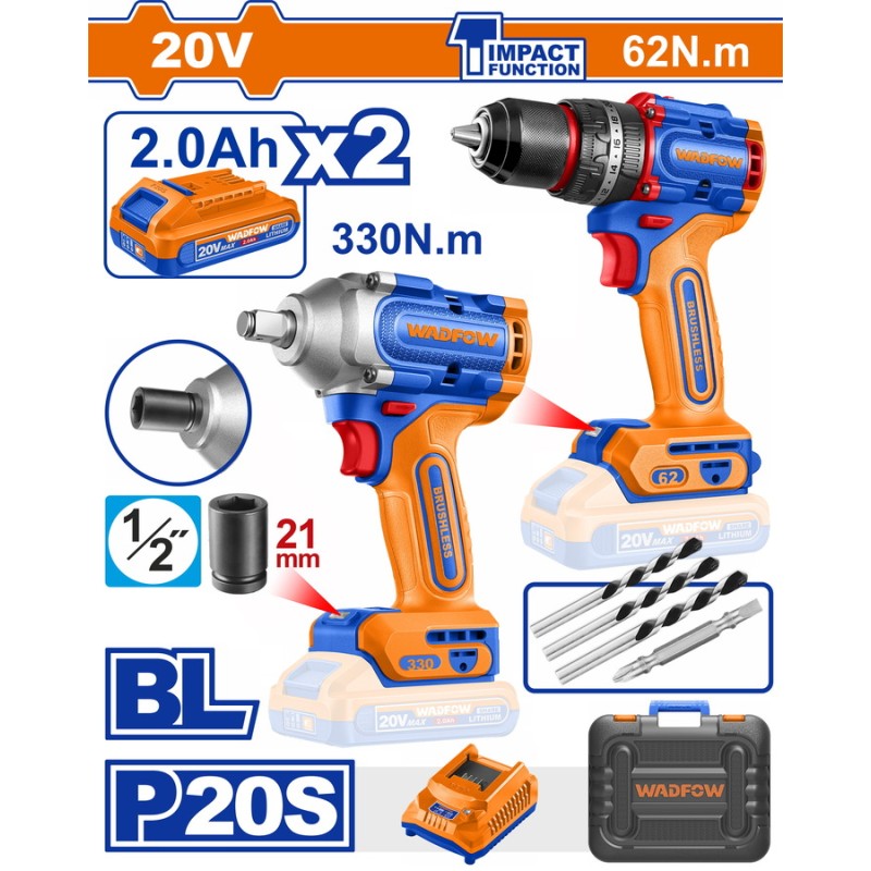 WADFOW ΣΕΤ ΔΡΑΠ/ΒΙΔΟ ΚΡΟΥΣΤΙΚΟ + ΜΠΟΥΛΟΝΟΚΛΕΙΔΟ ΜΠΑΤ. Li-ion 20V / 2Ah / 2 ΜΠΑΤ (WCK20275E)