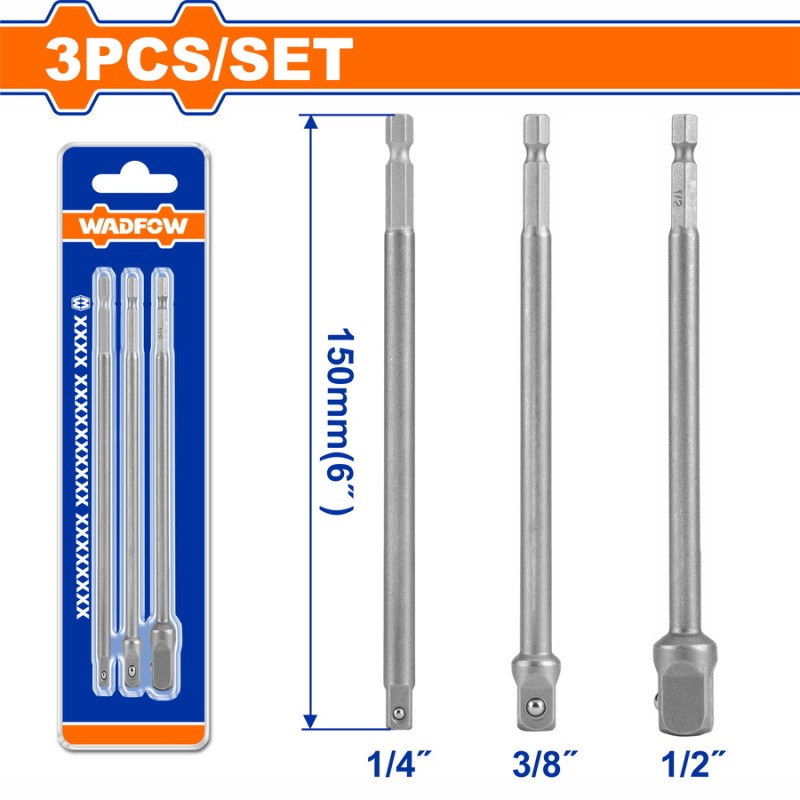 WADFOW ΣΕΤ ΑΝΤΑΠΤΟΡΕΣ ΜΑΚΡΙΟΙ 150mm 1/4" - 3/8" - 1/2" 3ΤΕΜ (WSV4K03)