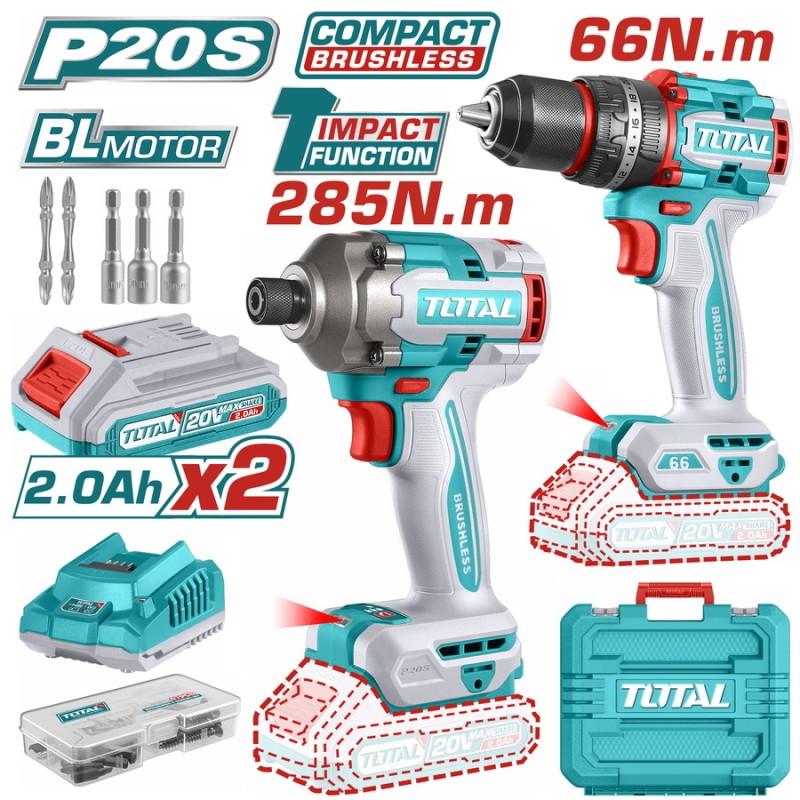 TOTAL ΕΠΑΓΓ. ΣΕΤ ΔΡΑΠ/ΒΙΔΟ ΚΡΟΥΣΤΙΚΟ + ΠΑΛΜΙΚΟ ΚΑΤΣΑΒΙΔΙ ΜΠΑΤ. Li-ion 20V/2Ah/2 ΜΠΑΤ (TCKLI20277E)