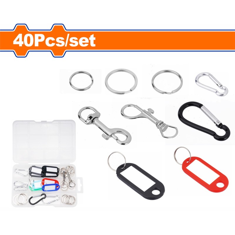 | 40 τμχ/σετ Υλικό | PE+ανθρακοχάλυβας+αλουμίνιο+ψευδάργυρος+γαλβανισμένο Επεξεργασία επιφάνειας γαλβανισμένη Καρτελάκια κλειδιών | 17 τεμ Μπρελόκ | 51mm 1τεμ, 65mm 1τεμ Γάντζοι κουμπώματος | 6 τεμ Μπρελόκ | 20mm 5τμχ, 25mm 5τμχ, 30mm 5τμχ Συσκευασμένο σε πλαστικό κουτί Συσκευασία | 36 τεμ