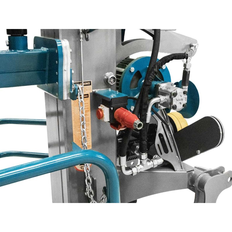 • Το μηχάνημα τροφοδοτείται με 2 τρόπους, μέσω μιας μεγάλης υδραυλικής αντλίας συνδεδεμένης με καρδανικό άξονα PTO ή από έναν τριφασικό επαγωγικό ηλεκτροκινητήρα 400V με ισχύ 10.1 Hp.