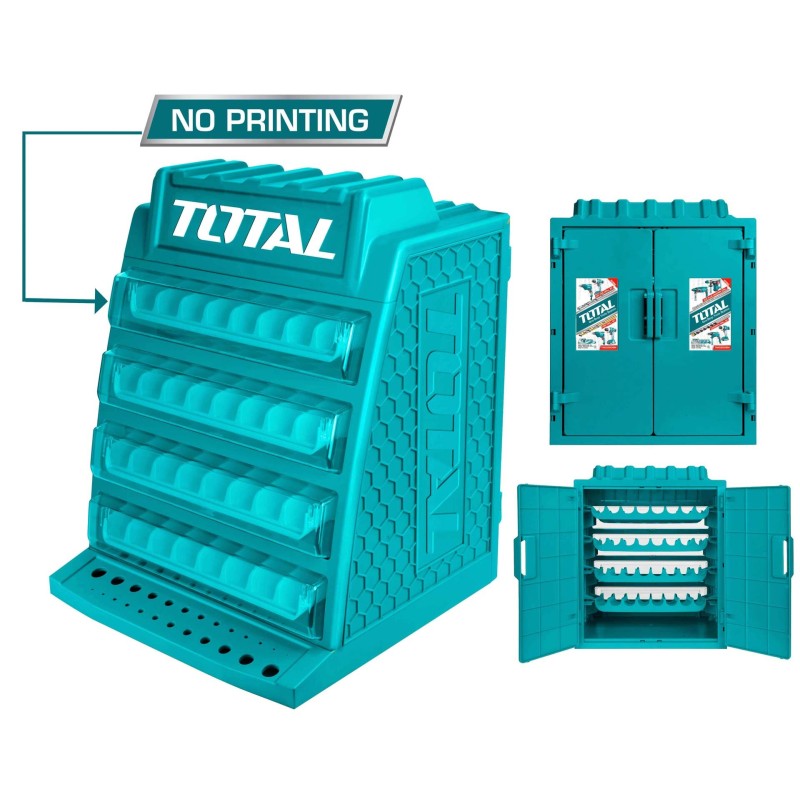 | Μετρικό μέγεθος Μέγεθος | 340mm*320mm*430mm Τέσσερις όροφοι Οκτώ κενά ανά όροφο Χωρητικότητα | 260 τεμάχια τρυπανιών Με λειτουργία μετρητή διαμέτρου