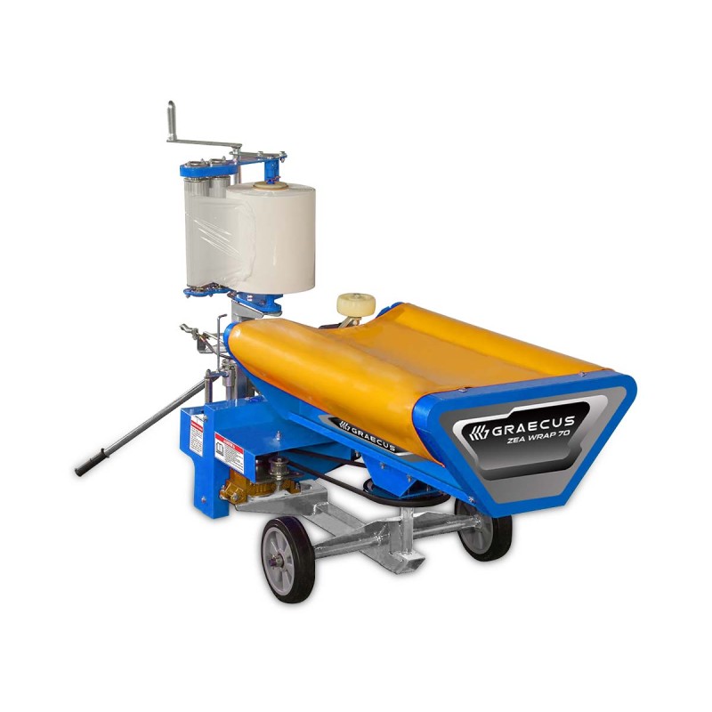 Μηχάνημα περιτυλίγματος στρογγυλών δεμάτων για παραγωγή ενσιρώματος. Εξασφαλίζει αεροστεγές τύλιγμα με stretch film, βελτιώνοντα