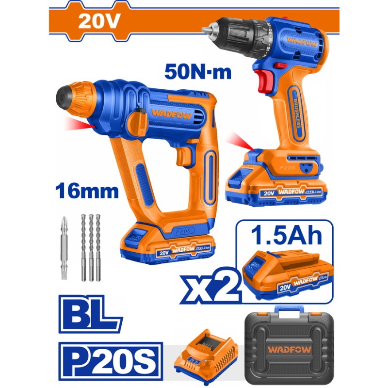 WADFOW ΣΕΤ ΔΡΑΠ/ΒΙΔΟ + ΠΝΕΥΜΑΤΙΚΟ ΠΙΣΤΟΛΕΤΟ ΜΠΑΤ. Li-ion 20V / 1.5Ah / 2 ΜΠΑΤ BL MOTOR (WOS240681)